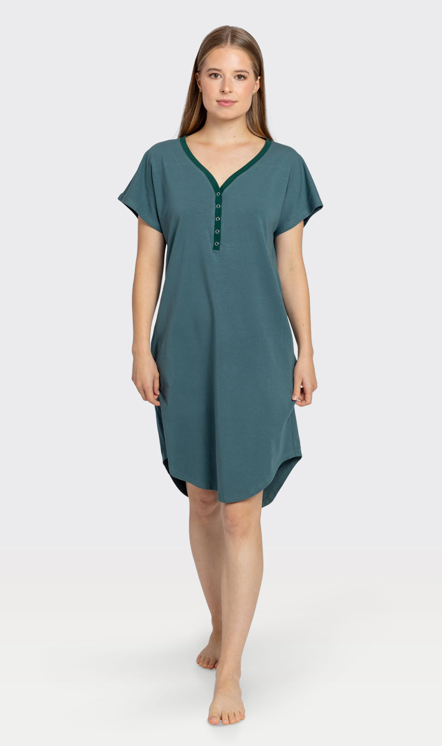 - Fünf Knöpfe zum Öffnen des Halsausschnitts (z. B. beim Stillen)