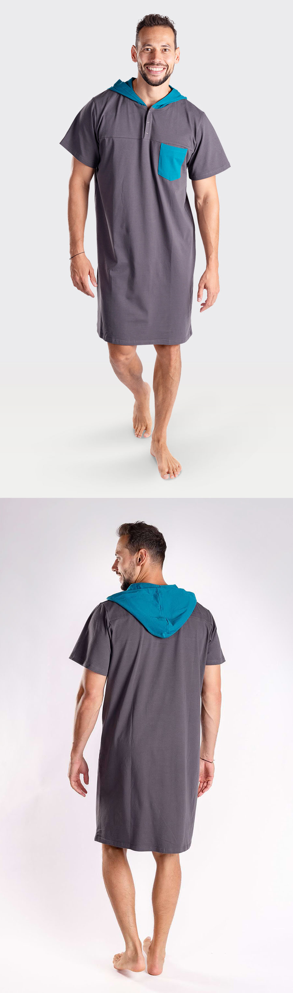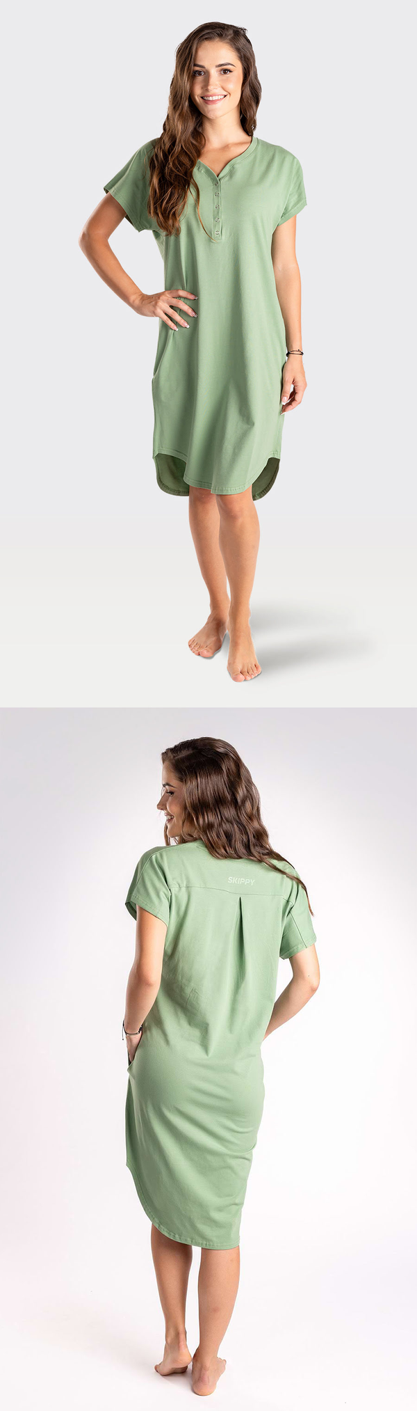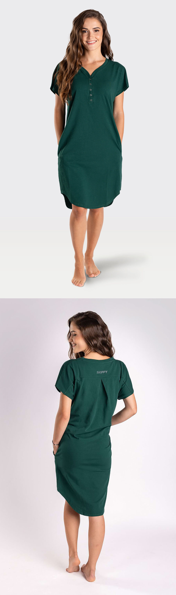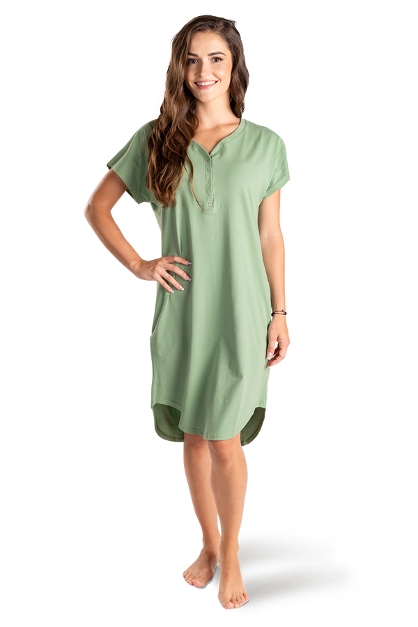- Fünf Knöpfe zum Öffnen des Halsausschnitts (z. B. beim Stillen)