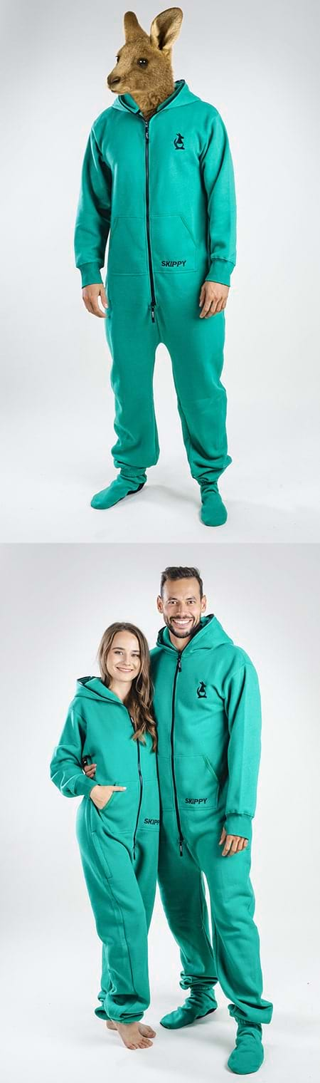 Zu jedem Onesie gibt es ein Paar Hausschuhe mit rutschfesten Sohlen als Geschenk.