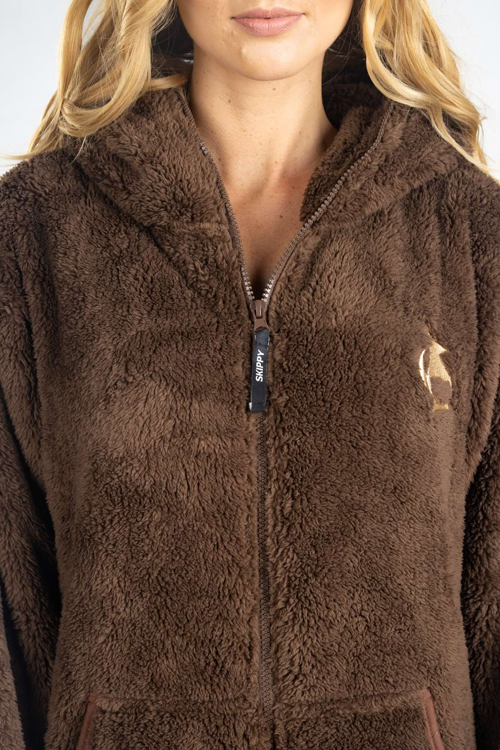 Reißverschluss bis zur Kapuze