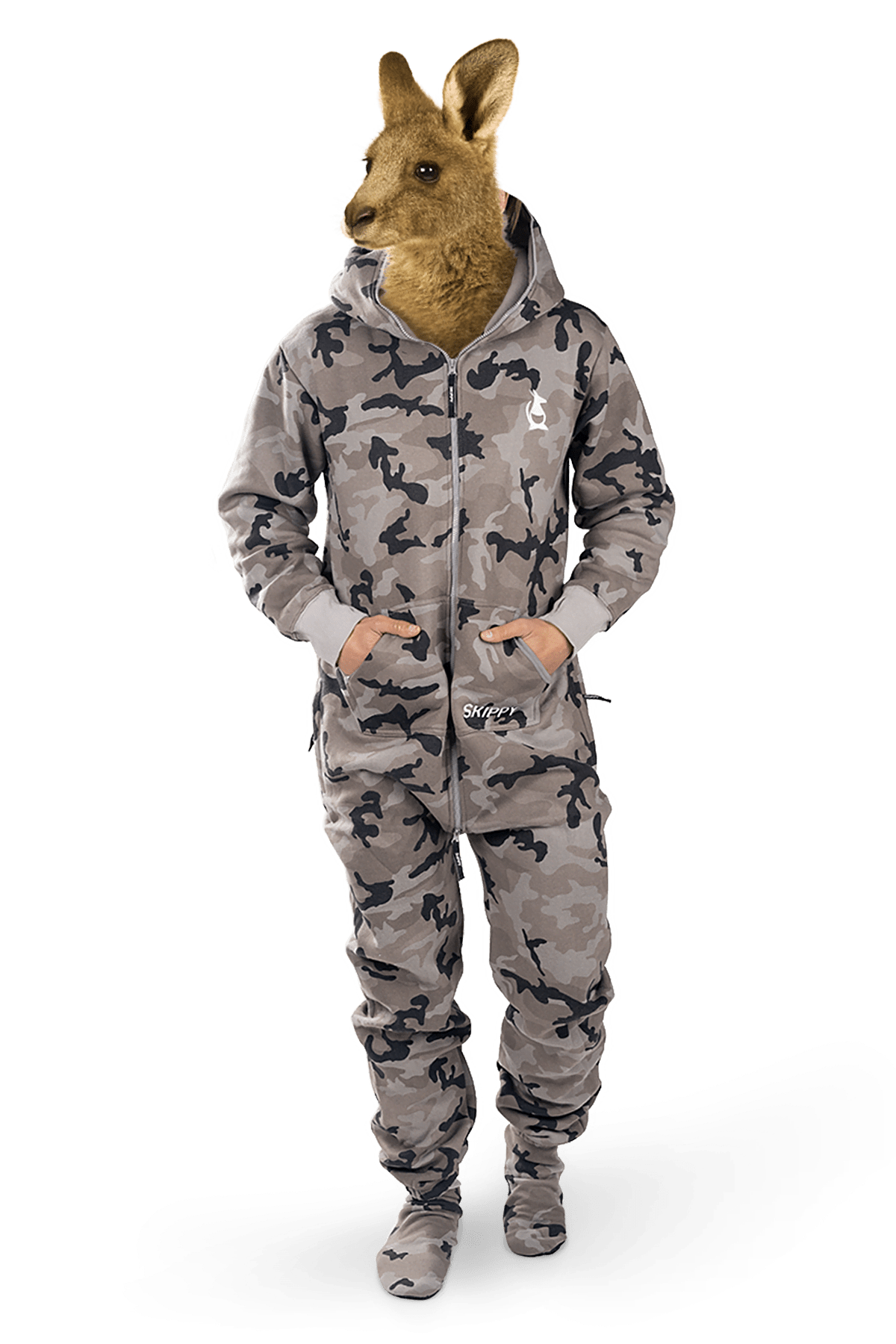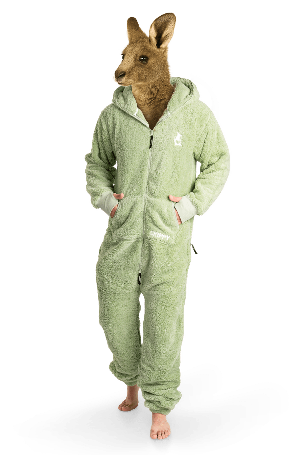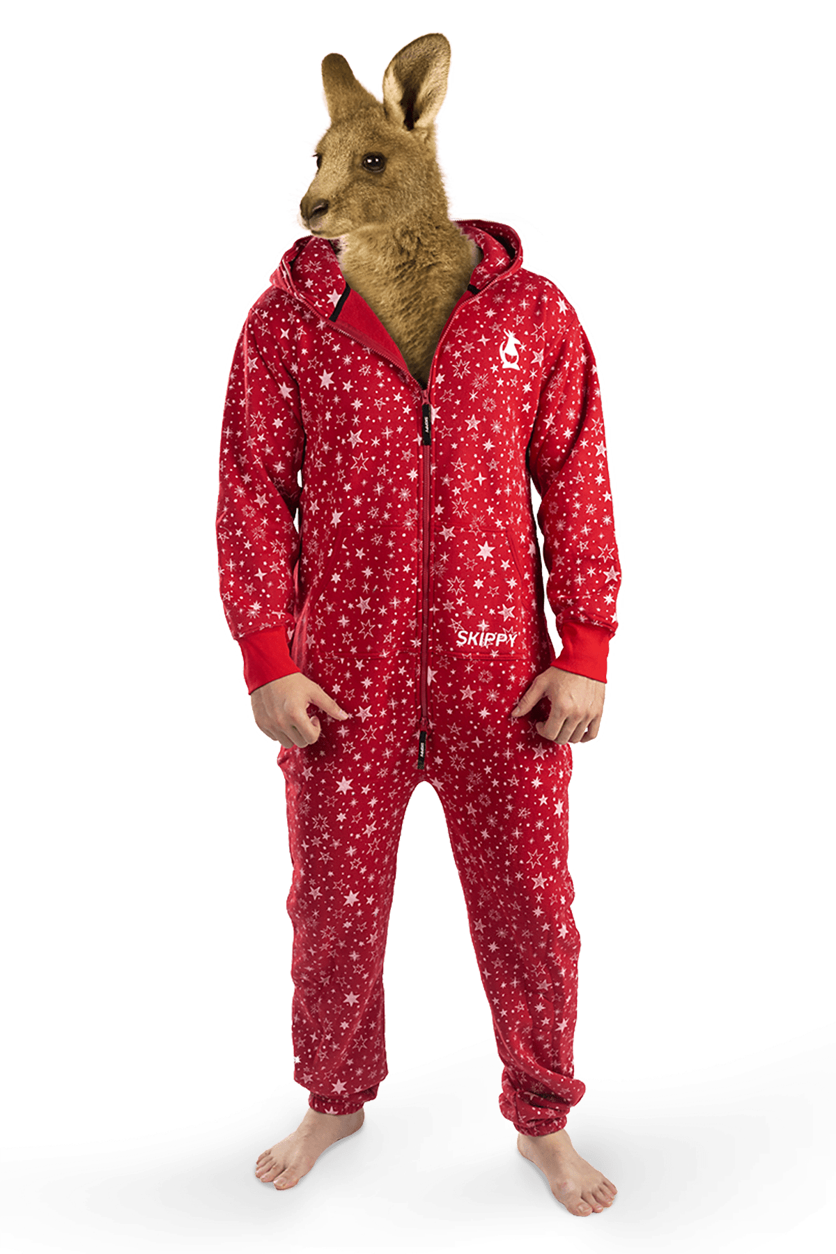 Zu jedem Onesie gibt es ein Paar Hausschuhe mit rutschfesten Sohlen als Geschenk.