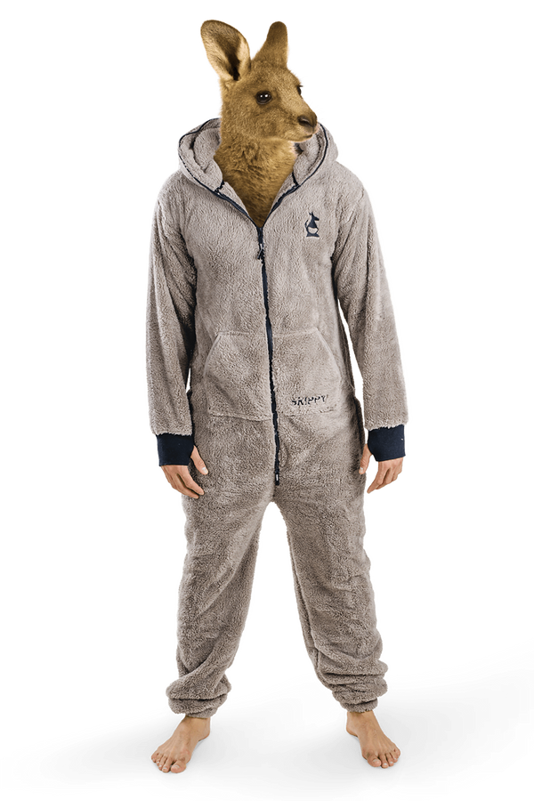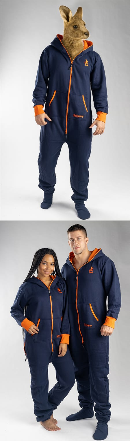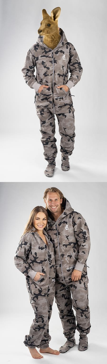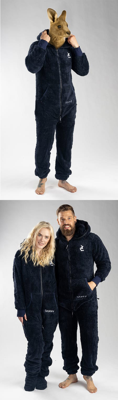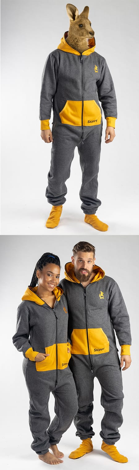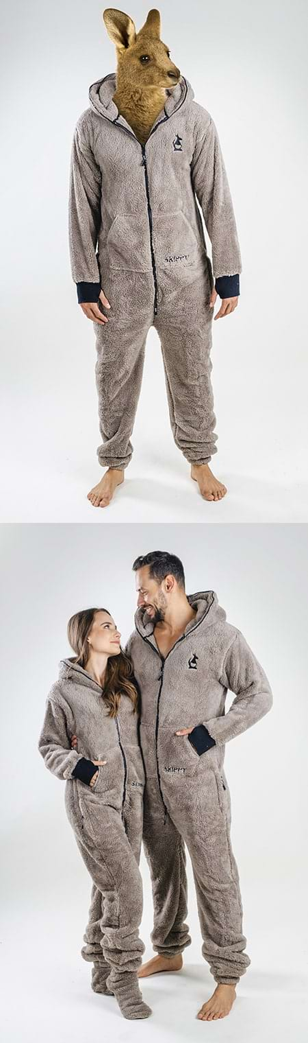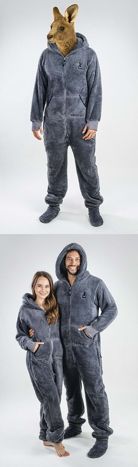 Zu jedem Onesie gibt es ein Paar Hausschuhe mit rutschfesten Sohlen als Geschenk.