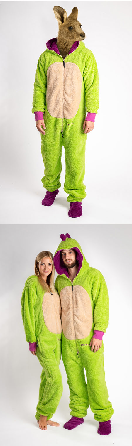 Zu jedem Onesie gibt es ein Paar Hausschuhe mit rutschfesten Sohlen als Geschenk.