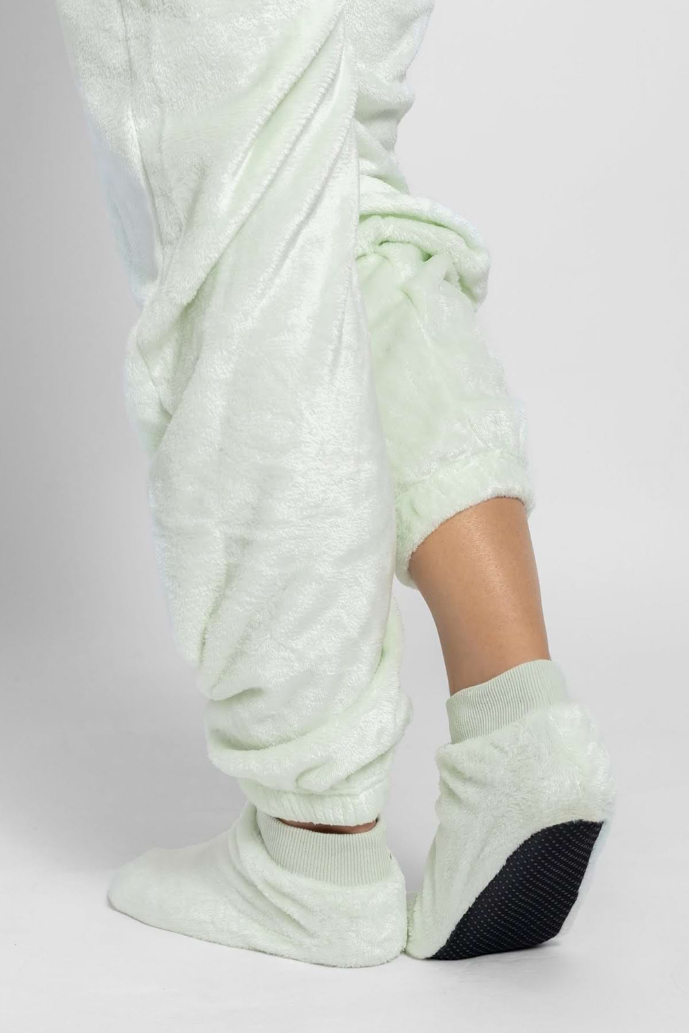 Zu jedem Onesie gibt es ein Paar Hausschuhe mit rutschfesten Sohlen als Geschenk.