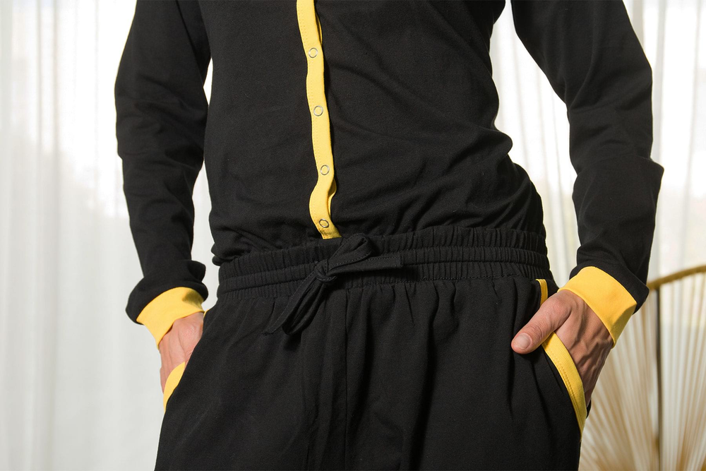 An der Taille, an den Ärmeln und an den Beinen dehnt er sich nicht aus, so dass du warm bleibst.